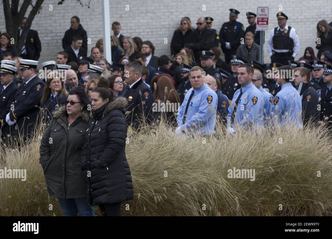 People Wait For The Casket Of Slain Rockford Police Officer Jaimie Cox To Exit The First Free Evangelical Church In Rockford Ill During A Funeral Service On Saturday Nov 11 2017 Cox